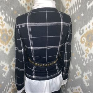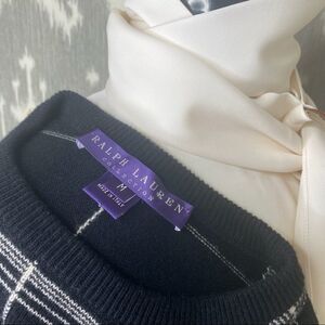 Ralph Lauren Collection Italian Black & Ivory Plaid Cashmere Crewneck Sweater