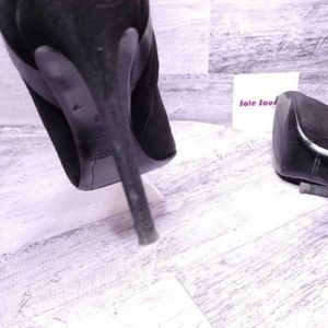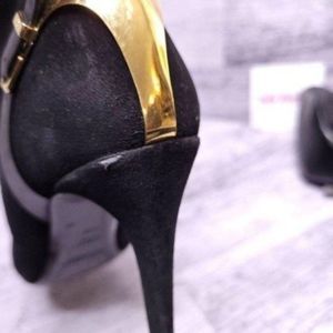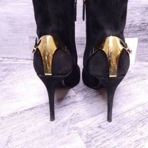 Ralph Lauren Collection Italian Suede Heeled Ankle Boot Black Gold Women's sz 10