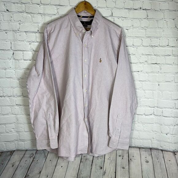 Ralph Lauren Color Pony Custom Fit Red Striped Cotton Shirt Size XL Long Sleeve