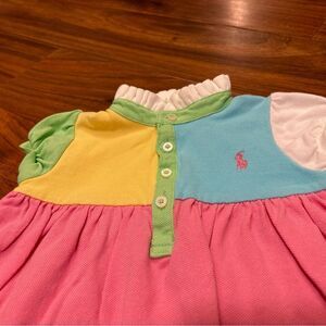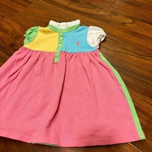 Ralph Lauren Colorblock Short Sleeve Polo Dress. Pink,white,green,blue,yellow. 4 buttons. 100% cotton. Size 12 months. Great condition.