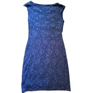 Ralph Lauren Dress Women's 16 Blue Lace Sequin Floral Sheath Cocktail