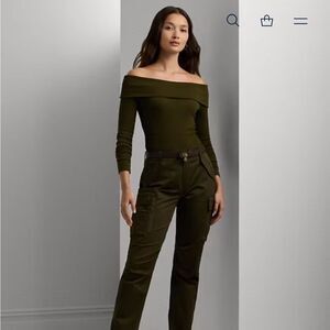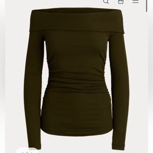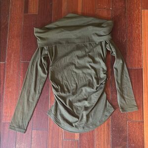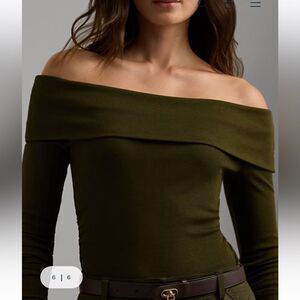 Ralph Lauren Green Ruched Long Sleeve Off the Shoulder Shirt