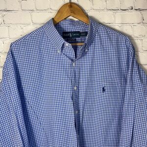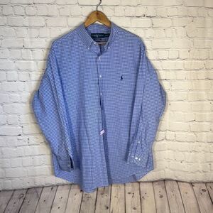 Ralph Lauren Mens Classic Fit Blue Check Shirt Button Down Shirt 17 1/2 32/33