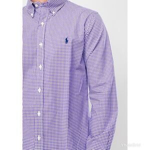 Ralph Lauren Mens Purple Slim Fit Gingham Plaid Collared Shirt