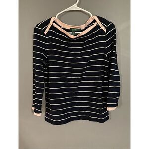 Ralph Lauren Striped Scoop Neck Long Sleeve Top Size Small