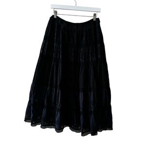Ralph Lauren Y2K black eyelet tiered lined midi skirt Sz M # 2403