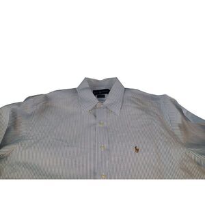 Classic Ralph Lauren Yarmouth button-up shirt in men's size XL, 16 1/2-36. Features a striped blue and white pattern, perfect for casual or formal occasions.