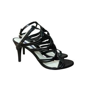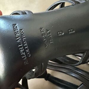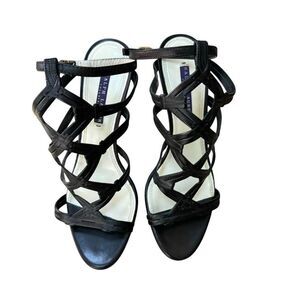 Ralph Lauren collection purple label black leather caged sandals 3.5” heel sz 8