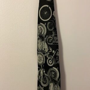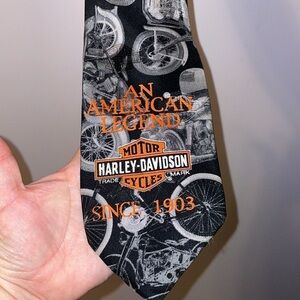 Ralph Marlin Harley Davidson Vintage American Legend Silk Necktie 2002. good preowned condition. Bikes and logo on front. Had some fading on back side maybe from sticker tag. See pictures and video.