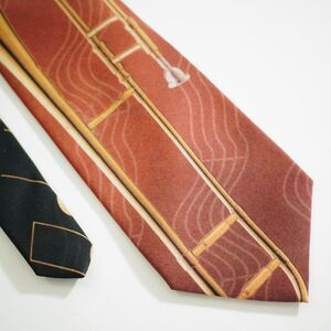 Ralph Marlin Trombone & Notes Brown Black Print Polyester Tie
