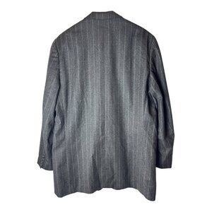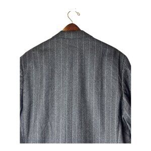 This tailored gray pinstripe blazer exudes sophistication and professionalism for business settings. Crafted for durability and comfort, the wool material ensures a polished look.