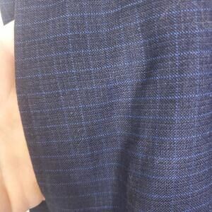 These Ralph Lauren men's pants in size 40 feature a navy windowpane plaid design, perfect for formal, workwear, or business occasions. Made from polyester, spandex, and rayon, the slim fit pants have a flat front and a mid rise. The zip, button, and hook & eye closure ensures a secure and comfortable fit. Ideal for the modern gentleman looking for a classic, preppy style, these pants are a versatile wardrobe staple that can be dressed up or down for any season.