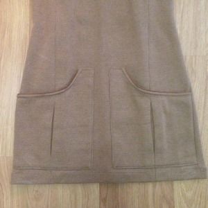 Like new work once. the tag shows price. Leather trim throughout. See trim on pockets & collar. One of a kind piece! Perfectly made. Just an FYI the tag is not attached and I lost it. I have not wore this dress but I have tried it on.