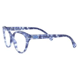 Stylish blue patterned eyeglasses by Ralph. Perfect for a chic look.