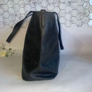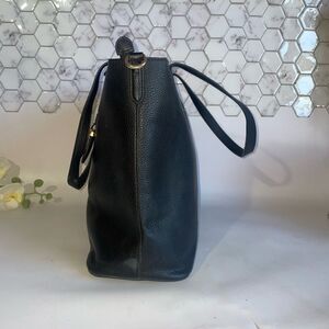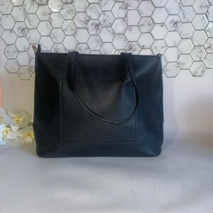 Sophisticated black tote. Ideal for daily essentials. Timeless design with elegant finish.