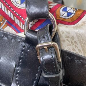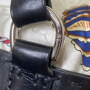 It is rectangular, with two silver-tone D-ring braided top handles, and a detachable polished silver-tone signature logo embossed luggage tag. The interior has one large & one small open slot pockets, made in Italy plaque, RL embossed hardware, and is unlined.