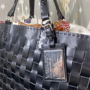 Ralph Lauren Black Calf Leather Basketweave Shopper Tote Hand Bag