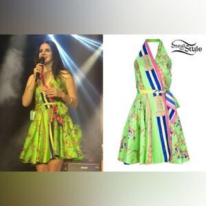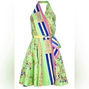 Ralph Lauren Blue Label Dylan Multi Equestrian Print Silk Halter Wrap Dress