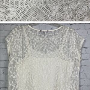 Ralph Lauren Boho Cottagecore Lace Sheer Overlay Cami 2 Piece Boxy blouse M