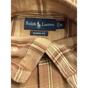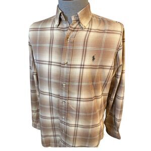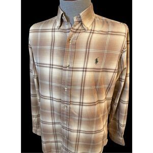 Ralph Lauren Classic Fit Flannel Plaid Button Front Shirt Sz. M Brown/Cream
