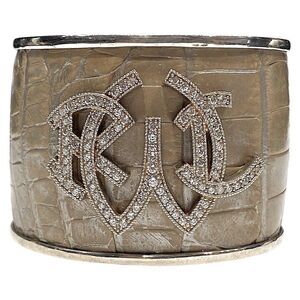 Ralph Lauren *Collection Crystal Monogram Sterling Taupe Alligator Cuff Bracelet