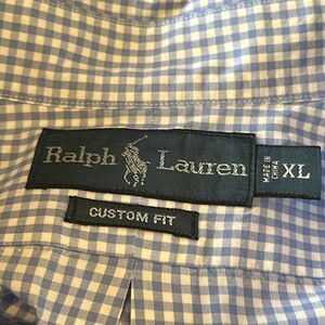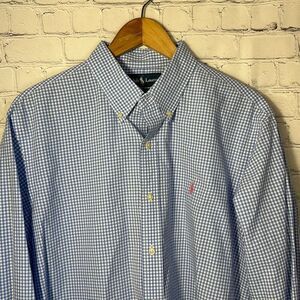 Ralph Lauren Custom Fit Blue White Checkered Button Down Shirt Size XL