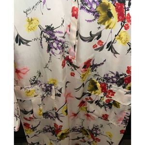 The dress is a size 12 and has a midi length, making it perfect for any season. It also features pockets, making it practical and functional. The dress is perfect for weddings, parties, cocktails, or even casual and formal events. The shirt dress is available in a multicolor design, making it a perfect choice for anyone who loves colorful and preppy styles. Chest measurement 22”. Length 40”. Smoke free home. Missing belt. There are string belt loops.