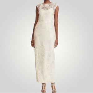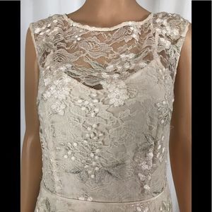 Ivory sheath with floral lace overlay. Back slit. One of my favorites in my closet. ❤️🌺