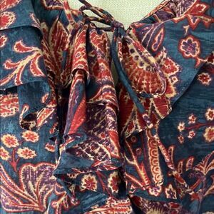 Ralph Lauren Lauren VTG Floral Ruffle Neck w Tie Lightweight Cotton