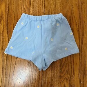 Charming light blue shorts. Features daisy embroidery. Elastic waistband with drawstring.