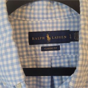 Ralph Lauren Men's Classic Fit Light Blue Gingham 100% Cotton Button Down Shirt