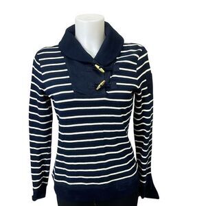Ralph Lauren Nautical Cowl Neck Toggle Accent Striped Blue & White LS Top sz XS