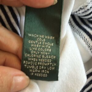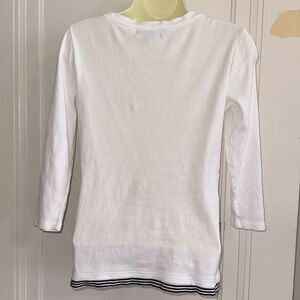 Lauren Ralph Lauren Nautical Look White & Dark Navy Cotton Knit Top with 3/4 Sleeves