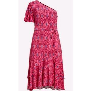 Lauren Ralph Lauren Pink Fuchsia Geo-Print Jersey One-Shoulder Dress Women's | Size 10 | EUC | MSRP $195 | 88% Polyester 12% Elastane | Machine washable | Side Zipper closure | Detachable Tie Belt | *Flaw: the hang strap was cut out.