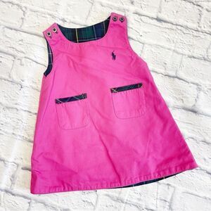 Ralph Lauren Reversible Jumper Dress, 12 mo Soft Corduroy/Plaid Tartan