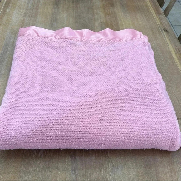 Ralph Lauren Satin Trim Blanket Soft Waffle Weave Pink Queen 90 X 90 Vintagee