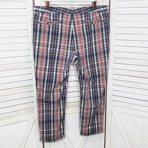 Ralph Lauren Sport Plaid Cuffed Crop Trousers Pants Pink Blue 14 Preppy Golf
