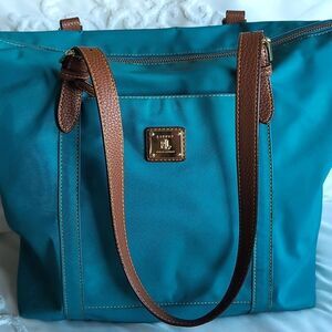 Ralph Lauren Turquoise Nylon Tote With Leather Detailing/Straps