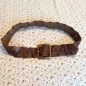 Ralph Lauren Woven Leather Belt with Gold Buckle