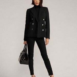 Ralph Lauren Black Wool-Blend Double Breasted Silver Crest Button Camden Blazer