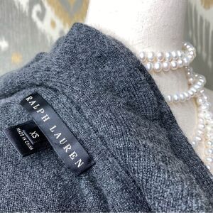 Ralph Lauren Charcoal Gray Cashmere Ruffle Front Cardigan Sweater