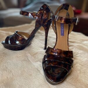 Ralph Lauren Collection Jenica Patent Leather Tortoise Shell Stiletto Sandal