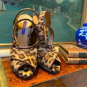 Gloriously glamorous, made in Italy, Pony Hair Calf Platform Sandals in a classic Brown Leopard Print with buttery soft calf leather trim.