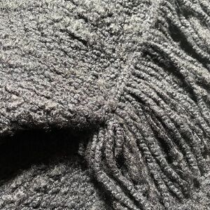 Made in Italy Fall 2015 Runway Collection super-soft, textural, black cashmere boucle knit, fringe-trimmed open-front cardigan.