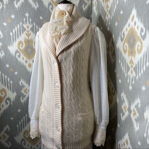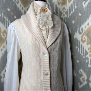 Ralph Lauren Ivory Cashmere Cable Shawl Collar Cardigan Vest