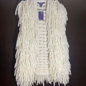 Ralph Lauren Ivory Hand Knit Wool Cashmere Shag Fringe Cardigan Vest