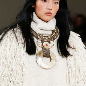 Runway and stock pics of a similar jacket, and similar shaggy vest, and price/hang tag, are included, as examples.