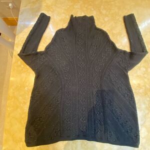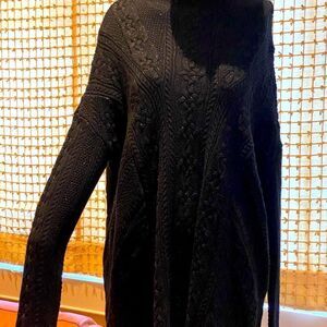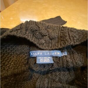 Ralph Lauren (Blue label) Long black sweater in size large. The fabric has a metallic shimmer and it is mock turtleneck. It is 69% cotton, 29% acetate, and 4% metallic. Has been gently worn and is super comfortable. Professionally dry cleaned prior to listing. Looks great with jeans or leggings. Size Large