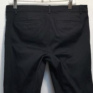 These new pants are sooo figure flattering! The material is soft and easy care. The inseam measures about 26". This style always sells out in this size. If it had tags you would think think they were new...they are! THe waist is about 34" and the inseam is about 26".
