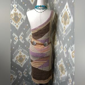 Ralph Lauren Pastel Painted Desert Serape One Shoulder Hand-Knit Dress